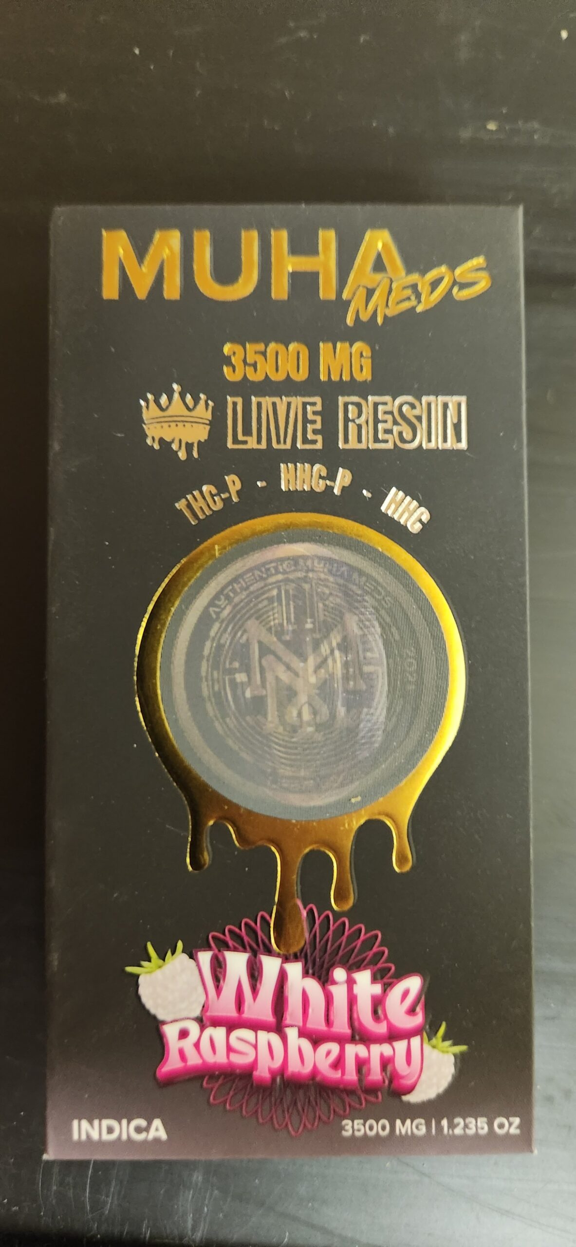 Muha meds 3500 mg live resin, white raspberry indica, one point 25 ounces